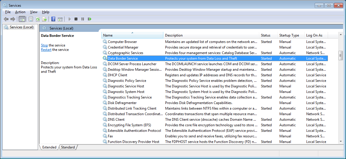 Data Border is installed on workstation PCs by an Information Security Team Administrator or an automated packaging process. It runs a service whose role is to oversee Data Border operation.