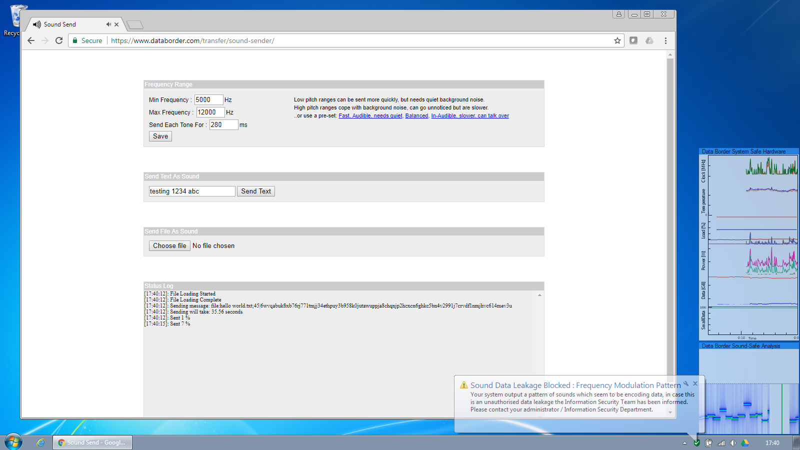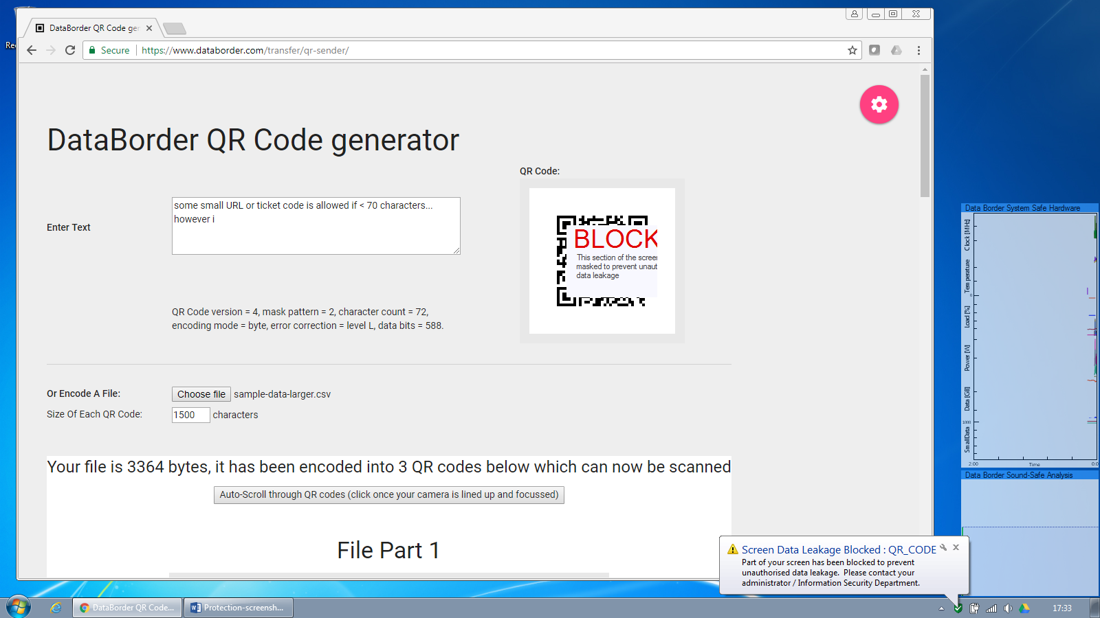 But when encoded data is attempted to be output, this is detected and blocked. An alert is raised to the information security team, according to the settings the security event is written to the windows event log, a Splunk aggregator log and/or a warning shown to the user if desired.