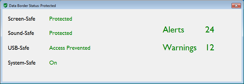 The user has access to a tray icon showing them the system is operational and providing a link to the data border website which has more information.