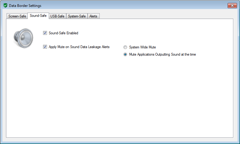 The sound output is prevented instantaneously as can be seen in the sound analysis screen. According to the Sound-Safe policy settings, either a system-wide mute of an selective mute of the application outputting the offending sound can be applied